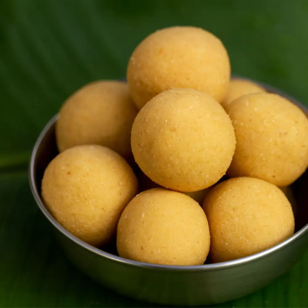 Fresh minapa sunnundalu bursting with strength and wholesome nutrition. We roast premium urad dal and combine it with natural jaggery and homemade ghee, so each laddu delivers incredible protein, iron, and traditional taste. Because we prepare fresh after your order, this strength sweet contains zero preservatives and remains perfect for kids, elders, and health-conscious families. A delicious way to build strong bones and muscles.